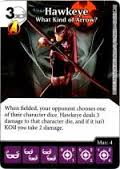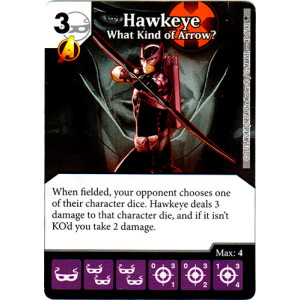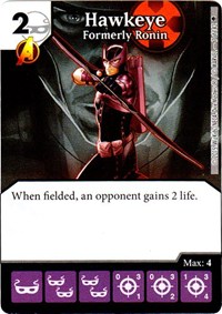 Hakeye es uno de los que aparecen en el starter, por eso vemos que sólo tiene versión común. Es un personaje que no jugría en ninguno de los tres formatos, no me convencen las habilidades, ya que en dos de ellas es el oponente el que elige, con lo que resulta muy difícil no llevarnos dos daños nosotros también en el caso de la versión que no viene en el starter (hay muchos personajes que cubren más de 3 de defensa), por poner un ejemplo.