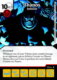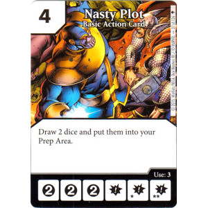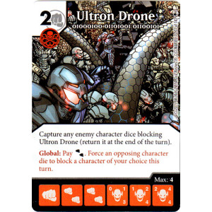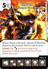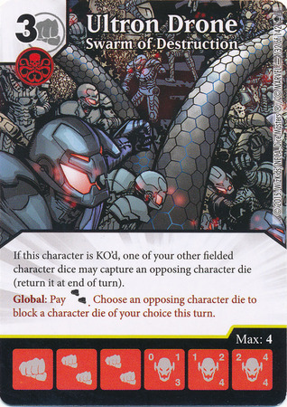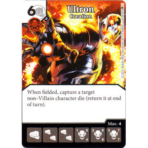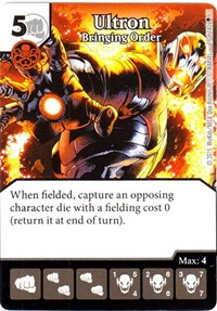 Me gusta la versión de Ultrón que no sale en el starter para jugar limitado. Combina muy bien con el dron infrecuente, ya que vas capturando dados con el dron (hace daño igual al coste de fildeo) y ultrón hace tres daños la primera vez que capturas. Si vas sumando daños salen bastante buenas cuentas. Pega: costes de compra altos y de fildeo también. Podemos usar el Nasty Plot como acción básica para llegar a su coste de compra, pero ya digo, que lo jugaría en limitado y con la condición de tener ya un dron. No sería primer pick.