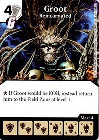 La versión común a lo mejor puede ser un personaje un poco molesto en cuanto al limitado, es un coste asequible de compra y vuelve en nivel 1 cuando lo haces KO, pero no es un buen personaje. Normalemente lo que nososotros queremos son personajes con mucho ataque, no con tanta defensa, ya que queremos hacer el máximo daño posible. Y la versíon infrecuente sólo reduce el daño a los afiliados, con lo cual no es un personaje que escogería para un equipo a no ser, como he dicho antes, que fuera limitado (y dependiendo del resto del equipo). La versión súper rara se está viendo en algunos equipos de construido de súper héroes, ya que da +3D a todos tus personajes, una buena forma de tener atacantes que no mueren y defensores que pueden cubrir casi cualquier ataque sin ir al KO.