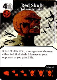 Otro personaje que está bastante condicionado. En limitado y en bloque no la jugaría porque nadie sule tener tantos avengers como para que te compensen las habilidades y además tiene un costa de compra demasiado caro para ese formato (no olvidemos que no hay rampeo prácticamente). En construido únicamente podría entrar en un formato donde se jueguen afiliaciones y creo que hay cosas mejores para meter en un equipo sólo de villanos, como Venom o Doctor Doom que también te quitan personajes de en medio y no sólo que sean avengers.
