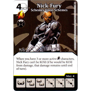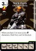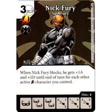 Curioso personaje Nick Fury para acompañar en un equipo de Vengadores. Bueno para el limitado. La versión infrecuente, acompañada de dos o tres Vengadores más va arañando daños al hacerse imbloqueable. Sabemos que en los limitados se forman grandes filas de personajes en las que ninguno de los jugadores se atreve a atacar por no poder sobrepasar la fila del otro. Pues aquí tenemos a Nick, que irá rascando daños poco a poco. Me gusta también para bloque y quizás en construido para un equipo de afiliaciones, siempre que esté bien acompañado de los Vengadores.