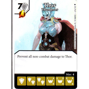 Personaje con dos afiliaciones, es Vengador y Guardián de la Galaxia. Esto nos da ventajas en cuanto a equipos de Teamwatch y afiliaciones. Aunque las habilidades nos son demasiado potentes. En un limitado podría llevarse bien con Rocket, Groot, Satard Lord, Gamora… o por otro lado con los Vengadores. Podría ser un hueco interesante para un equipo en el que mezclemos las dos opciones, tipo Starhawk, Wasp, Rocket, etc. Versión preferida: la infrecuente sin duda, aunque siendo la mejor tiene fallos. Nos da la posibilidad de rolear un Vengador o Guardián pero pagando el coste de fildeo, claro que siempre está la opción de elegir no hacerlo. En construido no la veo y en bloque podría ocupar un hueco en un equipo parecido al que hemos comentado para el limitado.