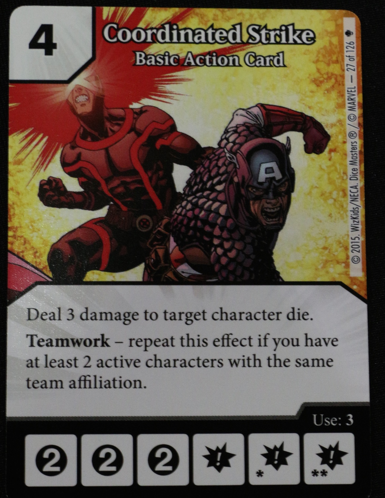 Me gusta bastante para equipos de afiliaciones, no es un coste demasiado alto y da +2A a dos personajes que sean de la misma afiliación. Como mucho se jugaría en limitado en un equipo en el que haya personajes con la misma afiliación o en algún equipo de afiliaciones. Pero no mucho más allá.